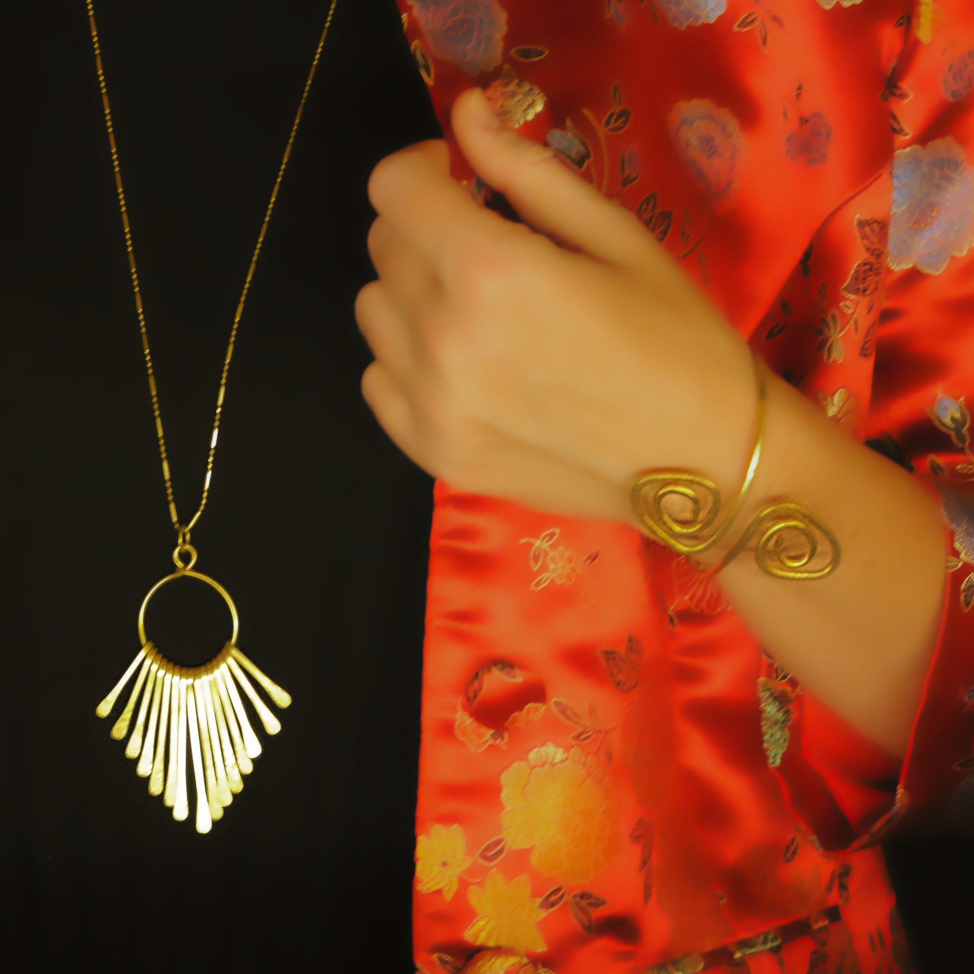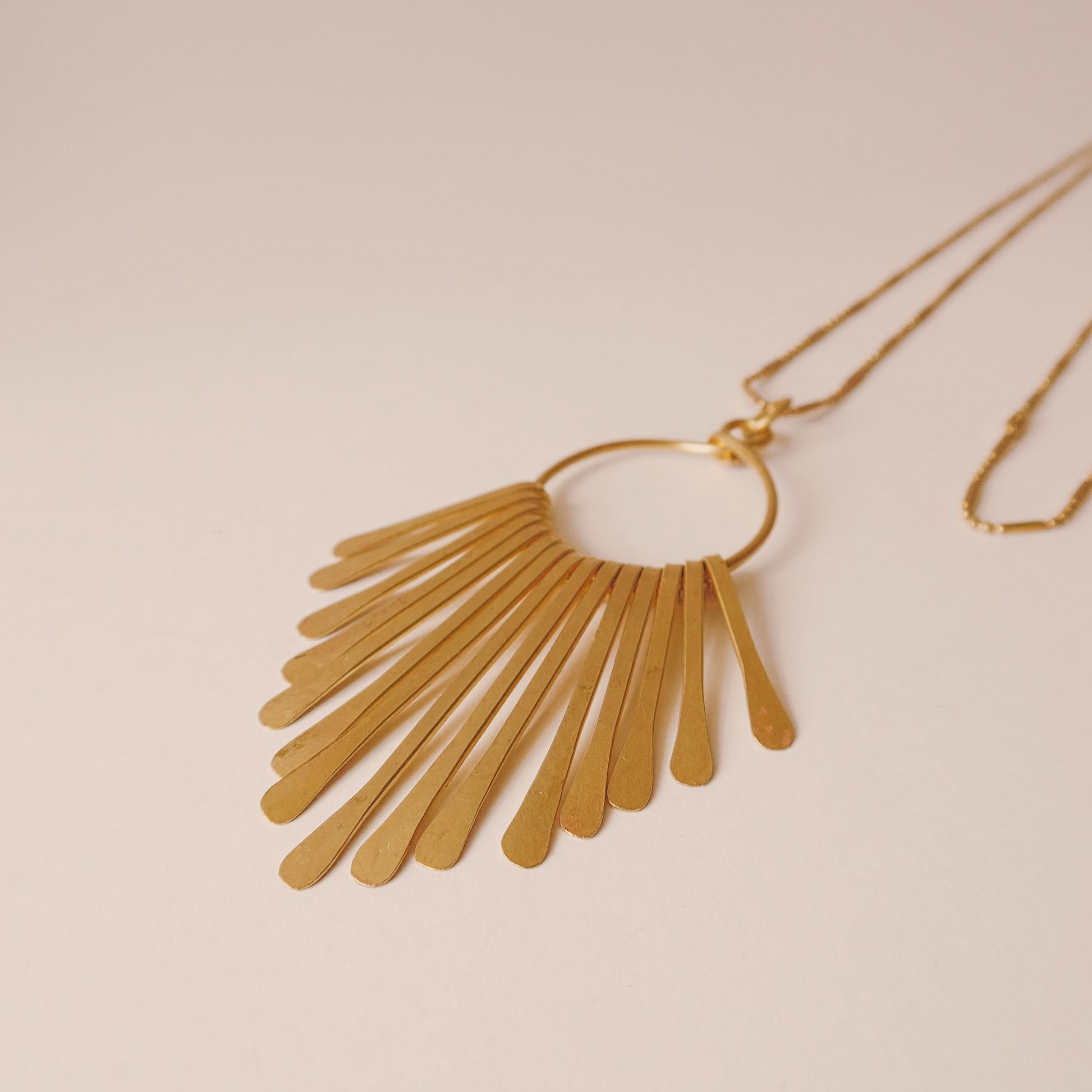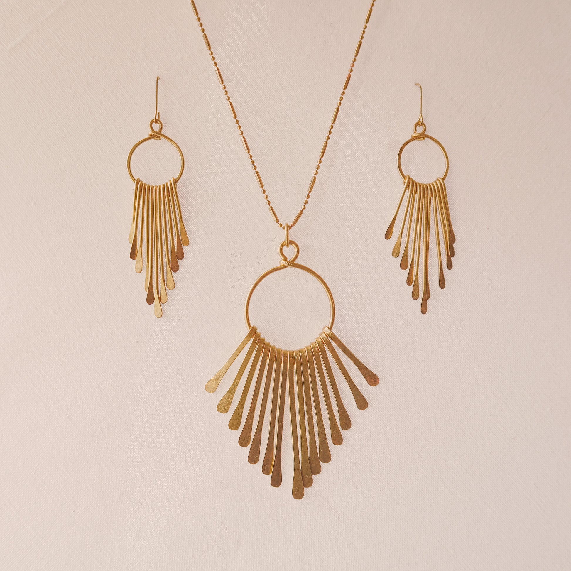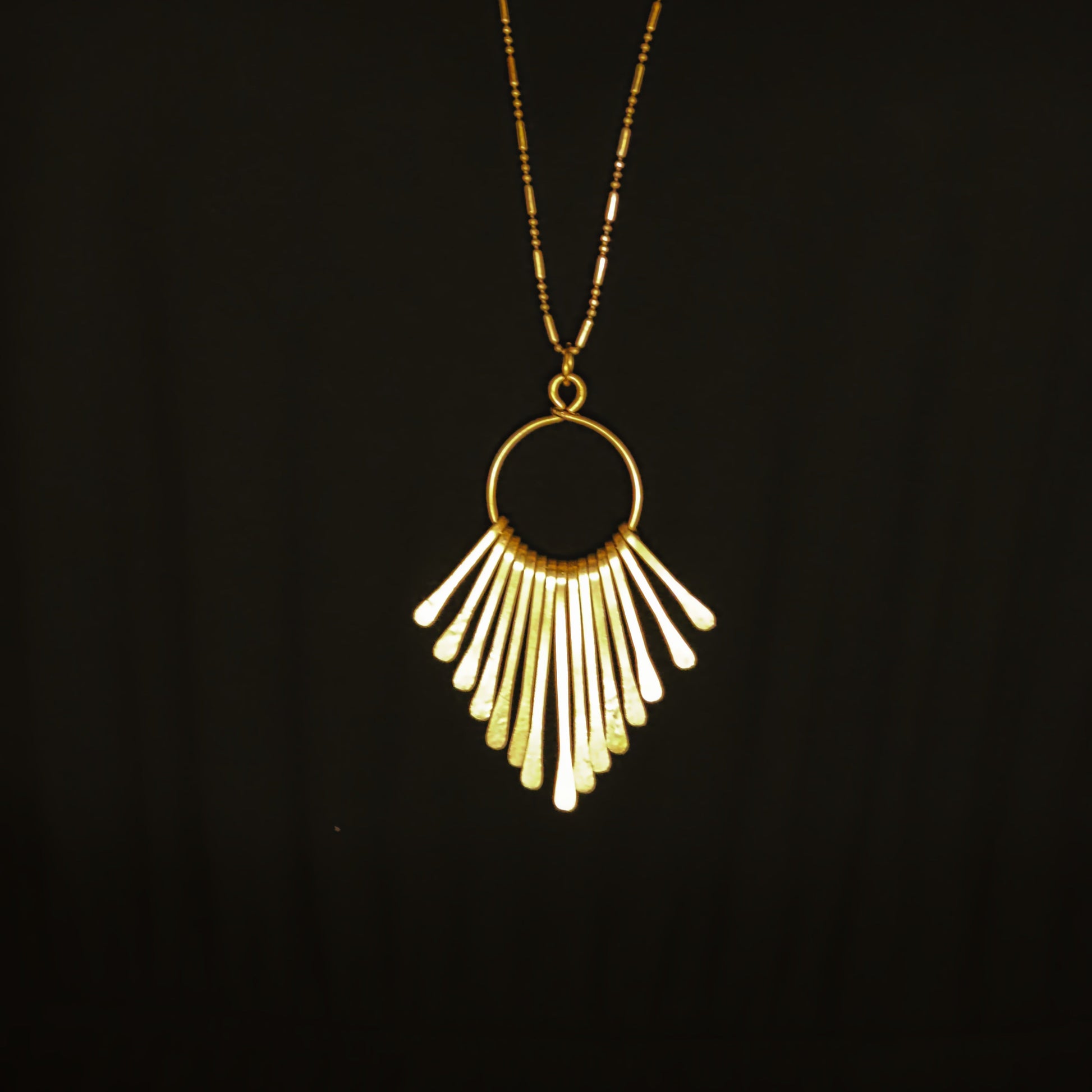 The Brass Waterfall Necklace is handcrafted with care. Pair it with dressier looks or make a statement with your daily wear. Whichever outfit you decide on will shine even more brightly with this beauty. Pair it with our Hammered Waterfall Earrings to complete your look.