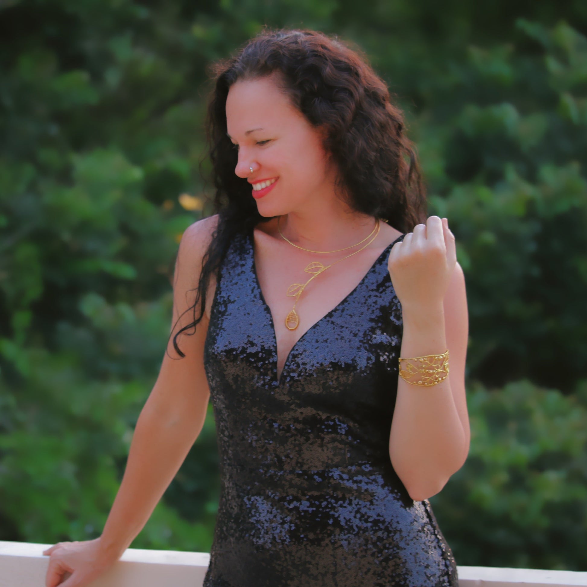 This hand-beaten brass design has leaf and water droplet motifs crafted from thin brass wire, which will bring you right to nature every time you wear it. The detailed design will add a burst of shine and elegance to any outfit you choose.