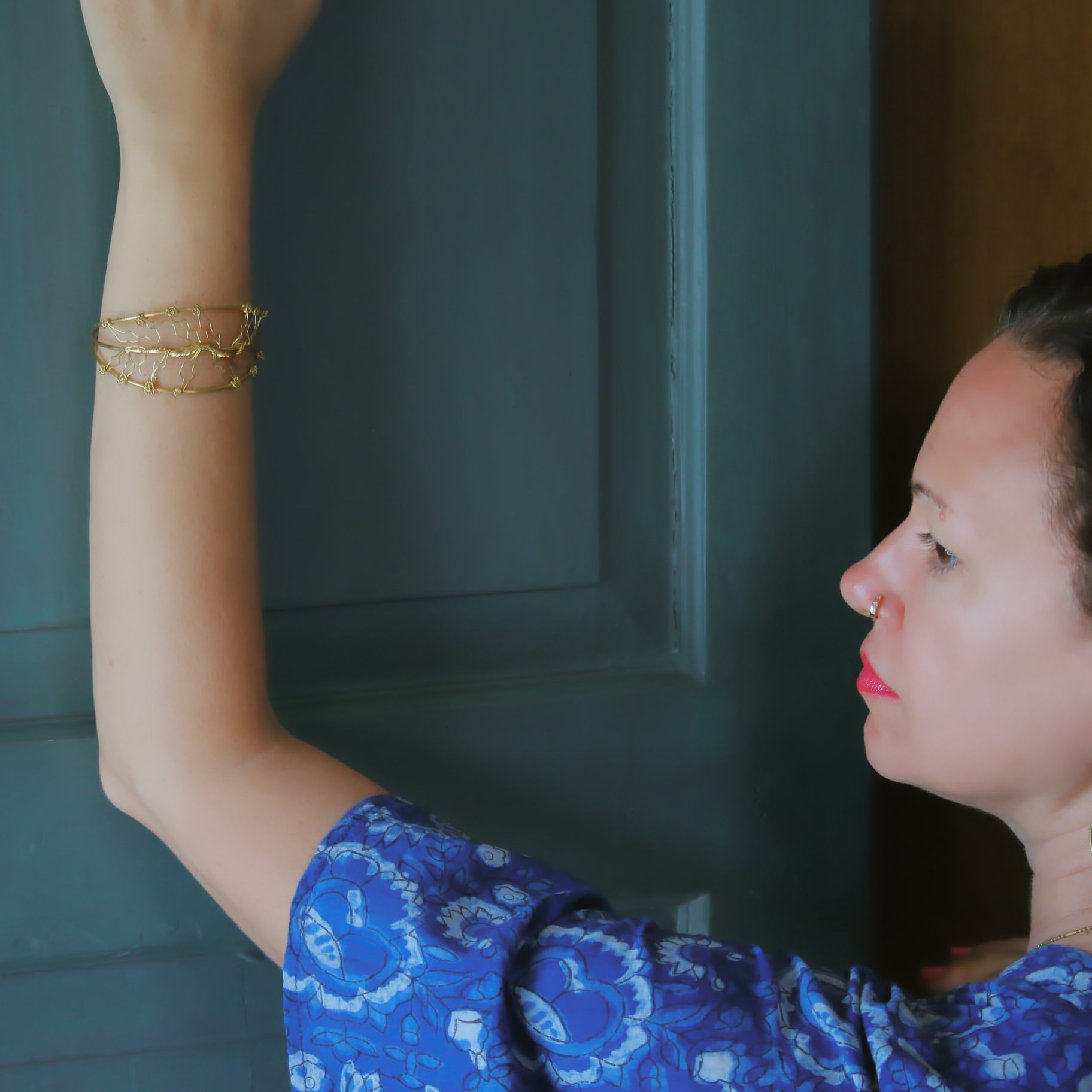 The Forest Vines Bracelet is simple and elegant, featuring thin brass wire creating the vines of a leaf, attached to the hammered brass cuff. Handcrafted in 18k gold-plated brass by artisans just for you, it will add a touch of nature to whatever you have on that day. Pair with the matching Forest Vines Earrings to complete your look.