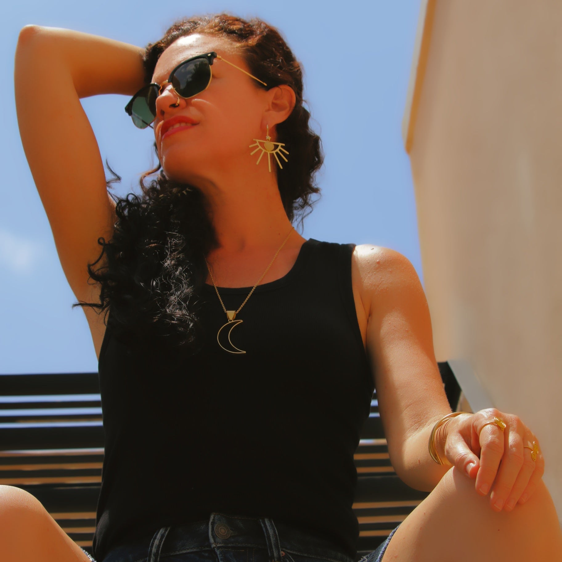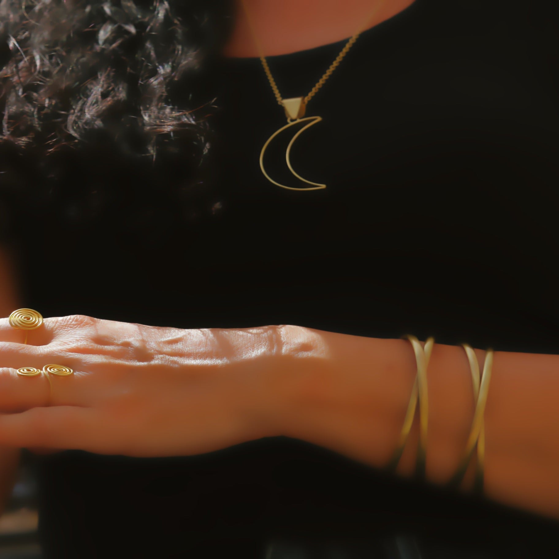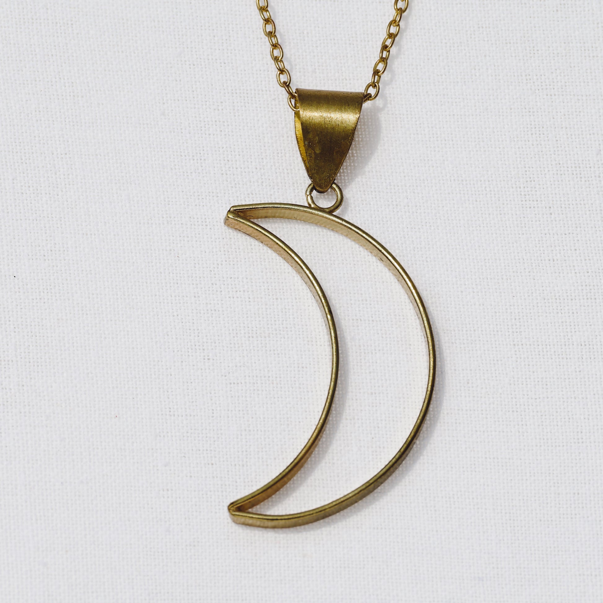 Our beautiful crescent moon necklace will shine brightly in the day or night. Wear it with your more casual outfits to enhance your look. Featuring gold-plated brass that is hand-made by Indian artisans.