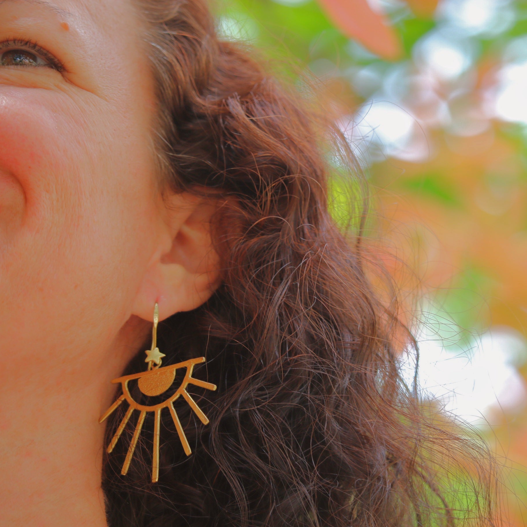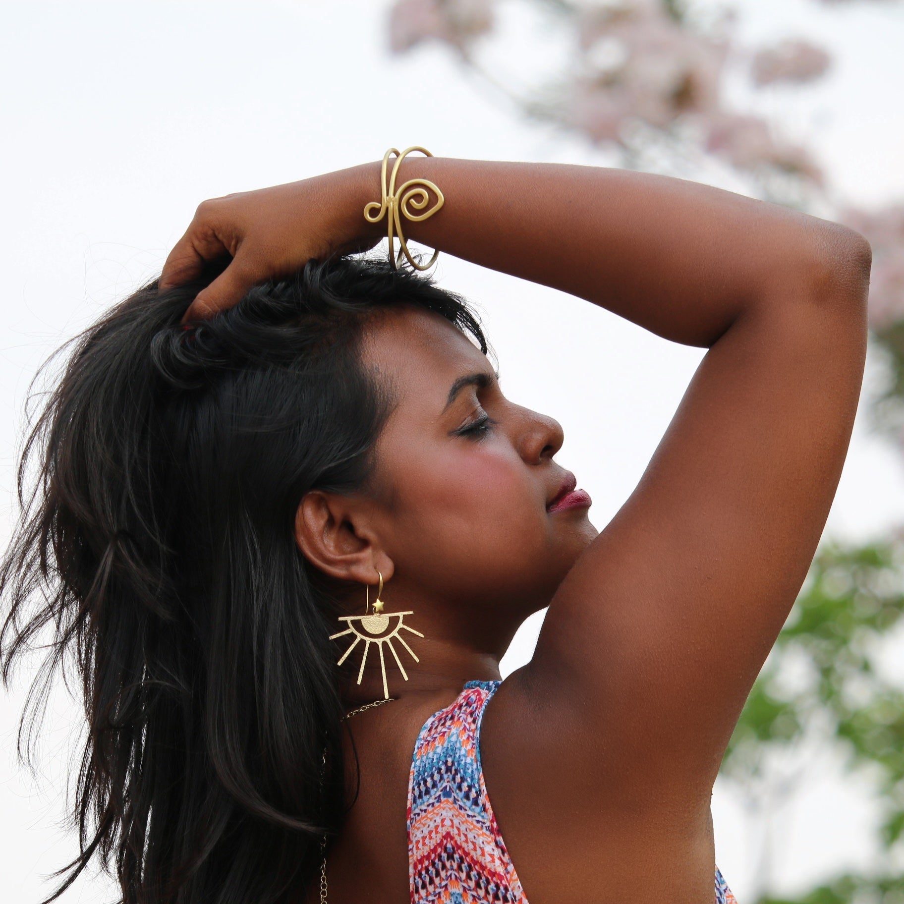 Adorn yourself with our Padang Padang Sunray Earrings, crafted with premium quality, gold-plated brass in a striking design. You'll illuminate the room with this stunning choice.