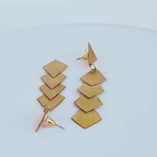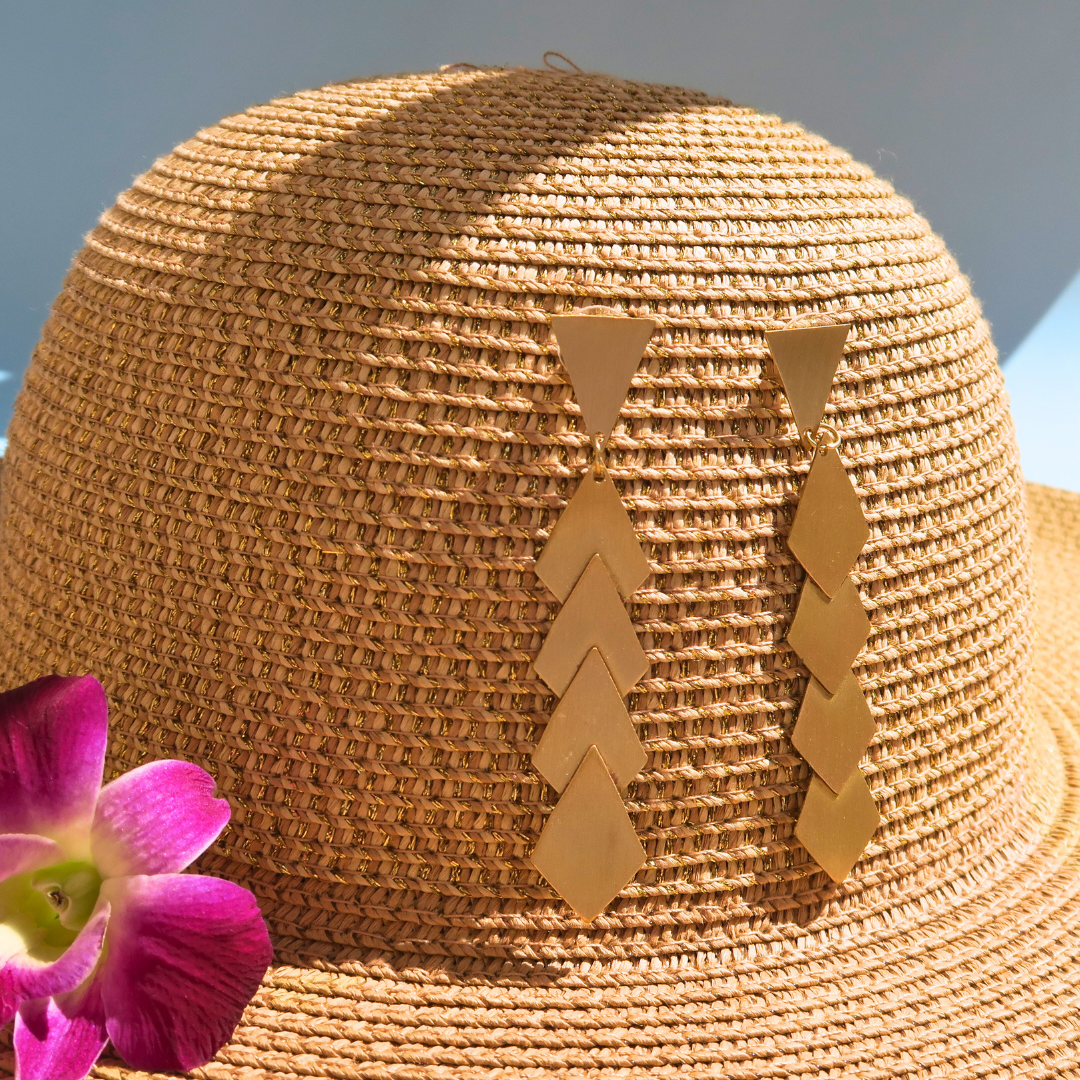 Adorn yourself in our Sassy Sanur Earrings, featuring a geometric design in gold-plated anti-tarnish brass. Pair them with your jeans outfit for a dressier look or enhance any dress or ensemble.